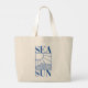 "Sea & Sun" minimal icon with waves & sunbeams Large Tote Bag