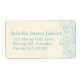 Simple outline drawing in cream and blue with graphic wave swirls, Beautiful blue green and sandy cream sea colors wedding return address label part of this wedding set design. A perfect reply label for a beach, coastal ocean inspired, or ocean sea destination wedding Edit this label with your name and address. Uniquely designed by Sarah Trett.