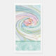 The soft pastel colors of this abstract swirl from one of my oil paintings, looks like a multi blue sea spinning around a pink watercolor shell. The watery marbleized border adds sophistication.