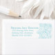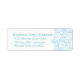 Simple outline drawing in white and blue with graphic wave swirls, Beautiful blue green and white coastal colors wedding return address label part of this wedding set design. A perfect reply label for a beach, coastal ocean inspired, or ocean sea destination wedding Edit this label with your name and address. Uniquely designed by Sarah Trett.
