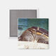 Capture the calm and beauty of the ocean with this peaceful sea turtle square magnet. Featuring a serene turtle resting near the shoreline with soft turquoise water in the background, this design brings a relaxing coastal vibe to any space.