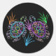 Graphic illustration of colorful sea turtles and seaweed glowing in the ocean. You can customize these cool stickers with name or message for any occasion. Great for classroom reward stickers!