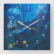 SEA TURTLE IN FLIGHT SQUARE WALL CLOCK