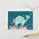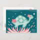 "Sea Turtle Maui" Postcard with a illustration of a sea turtle and a starfish surrounded by bubbles, fishes and hibiscus flowers. Just floating in the ocean of Maui, Hawaii.