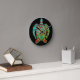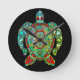 Mosaic sea turtle in jewel tone colors of turquoise, red, green, blue and gold on a black clock.
