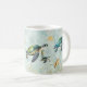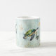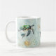 Sea turtles and thier babies mug. Aqua geometric print background with seashells. There is a matching pop socket for cell phones.