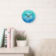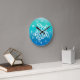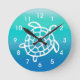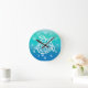 This design features a sea turtle swimming in a watercolor painting of ocean colors. To personalize this clock, click on the Customize It button. You can reduce the size of the turtle if you need to add text.