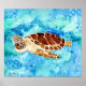 Sea turtle turtles canvas artwork marine sea life sealife watercolor ocean marine animals painting poster print and gift ideas for lovers of turtles cute adorable sweet baby turtle swimming in the aqua waves surf and water beach nautical marine coastal art decor picture drawing illustration water color paintings and gifts protect endangered species activism