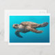 This postcard features a photo of a sea turtle.