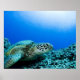 Sea turtle resting underwater poster