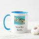 Cute Sea Turtle "Save the Earth" coffee mug in light blue trim (other trim colors available) shows you care about the planet and enviroment. Amazing close-up photo of the beloved aquatic creature saying "hello" warms the heart. Show your passion (and love) with this Ken-Ray original.