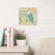 Sea Turtle Tan Map Vintage Square Wall Clock