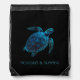 sea turtle, tattoo style, blue digital drawing T-S Drawstring Bag