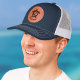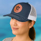 Custom Leather Patch Hat, Sytle: Adult Retro Trucker Cap, Color: Heather / Black, Shape: Circle