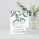 Blue, Turquoise and Yellow Sea Turtles with tropical leaves feature on this ocean, beach life wedding item. Text template fields both sides ensure you can add all your additional details, including rsvp, gift registry, reception details, directions and more.