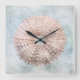 Sea Urchin Distressed Coastal Blue Cream Painting Square Wall Clock