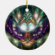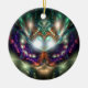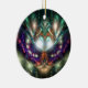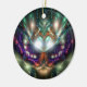 Here we have a fractal image of an evil sea witch. You can see her snake-like eyes. Her cheeks glow white. Her smile is more like an evil smirk. She is wearing a headdress made of the tail of a orange and blue fish and the skull of another fish. She also has a collar that is purple, pink, and blue.