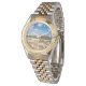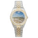 The watch is very nice, the picture is great and the watch looks like quality. The only problem I am having with it is that it is a little too large, and I also can't figure out how to open the clasp. No directions came with it. Very good. The printing is perfect and the watch keeps good time.