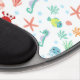 The plastic backing is nice and sturdy. The grippy pads underneath keep the mouse pad where I put it on my table. The pad the mouse sits on is cut well to fit the backing. The wrist pad is perfectly soft, supportive, and thick. I'm left-handed, and this mouse pad works just as well for me as it does for my right-handed friends. I'm the designer of HippieClecticHope products. I'm blown away by how well my intricate fractals turn out on the tangible items in the Zazzle Marketplace. This particular mouse pad ***appears*** like a 3D object... A mathematically-engineered rainbow black opal, inlaid under transparent fabric...