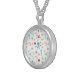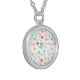 I chose gold plated so that the metal would not react with my skin oils and perspiration. But, I changed the necklace from the gold plated one to a sterling silver. My skin cells will tarnish the silver. But it will not look as bad if some portion of the gold plated necklace somehow became compromised. Zazzle did a find job turning the picture into a pendant for me. As you can see, the colors and the printing of the final product, match the preview. The picture I took is not very clear. But I am pleased with the product I received.