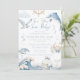 Celebrate the arrival of your little one with this cute, simple, and elegant ocean-themed baby boy shower invitation, featuring charming light blue sea creatures adorned with sweet bows and gentle ocean waves. A playful calligraphy message, “Sea You Soon, Baby,” adds an extra touch of whimsy and charm.