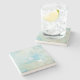 A grunge style stone coaster featuring a pale turquoise blue, green and off white checkered pattern with your custom text or monogram (optional). A beautiful ocean inspired design.