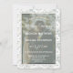 This customizable virtual long distance livestream wedding invitation features an ornament decorative green and ecru damask background with a white Seafoam green frame. Just add your details to give it a custom feel and voila!