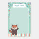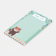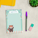 Looking for a red panda themed sticky notepad in a tall size? These personalized post-its are printed with your name or the text of your choosing, an adorable red panda in a kawaii inspired style, lots of stars and matching stripes. Scribble down your notes, messages, things to remember, and to do lists on the seafoam green arch-shape. It will brighten the desk of any animal loving little girl!