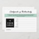 Seafoam Green Your Logo Authenticity Certificate
