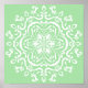 This white mandala sits on a soft green background. The colors are serene and creative. Part of the Losonieth Mandala Collection.