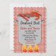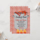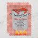 Red and white gingham with grey boiling pot , crawfish, shrimp, crab, flames and tied rope.
