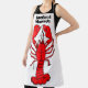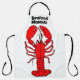 Chef apron with image of a red lobster and the words, Seafood Maestro. In red and white with black trim.