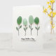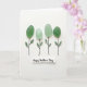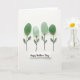 Designed with four stylized flowers arranged in a neat row across a bright white background, this card keeps the scene calm and airy. Each flower head is made from rounded, irregular pieces of frosted sea-glass in green shades, from deep jade to pale seafoam, catching light with a soft milky glow ❤️. Slender, dark stems drop down from each glass “blossom,” giving the layout a gentle, steady rhythm like friends standing close together. Small pairs of ribbed leaves branch off the stems, repeating the green tones and adding a quiet, caring detail 🌼. Beneath the flowers sits a simple white rectangular plaque that feels like a note placed carefully under a bouquet. The message “Happy Mother’s Day” appears centered on the plaque in a flowing dark gray line of lettering. The plaque sits just below the stems, leaving generous white space around the row of four green glass blossoms.