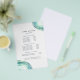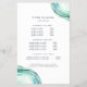Chic watercolor flyer card design displays your services, price list or business information framed by geode agate slice illustrations in ethereal shades of seaglass green. Includes three customizable headings and body text fields, and space for your business contact information along the bottom. To adjust layout, enter your text and then use the Customize function to change positioning and font sizes. Ideal for salons, spas, makeup artists or any business.