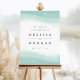This coastal chic wedding welcome sign matches our Seaglass Tides collection, featuring sheer watercolor washes of seafoam green along the top and bottom, with your custom text in navy and gray lettering.