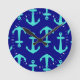 Seagreen Anchor On White Coastal Pattern Decor Round Clock