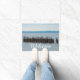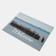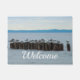 Welcome doormat that can be customized featuring a photo of seagulls sitting on an old dock / walkway along Lake Superior from Whitefish Point in Michigan.