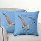 This beautiful sky blue throw pillow features the photographic image of a seagull in flight in a clear blue sky. This black and white seabird with its wide spread wings is flying freely across this coastal theme pillow. Personalize with the Initials or Name of a true Free Spirit. These pillows are a perfect beachy design for the Beach life vibe.