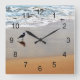 Seagull Reflection with Sand and Ocean Beach Square Wall Clock