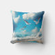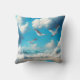 Seagulls flying above the Sandy Beach Throw Pillow