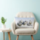 This decorative throw pillow features six gray and white seagulls gathered at the shore on a sunny day. The image is repeated on the back.