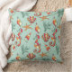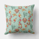 Seahorse and Seashell Pattern Teal Throw Pillow