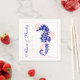 Seahorse and seaweed navy blue, pink wedding paper napkin that features a navy blue seahorse and blush pink seaweed on white background. This modern whimsical template design is part of a wedding set perfect for a beach summer wedding bridal shower, reception, engagement or anniversary party. It is completely customizable.
