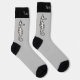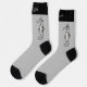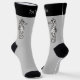 Stylized black and white icon of a seahorse. Custom background color. Custom top stripe color. Custom text on each sock.