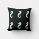 part of the ocean themed decor SEAHORSE blue on black pillow