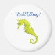 A watercolor painting of a vibrant yellow seahorse adorns this "Wild Thing!" magnet!
