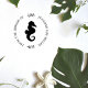 This elegant marine seahorse library book stamp features a silhouette of a seahorse surrounded by ´´from the library of´´ text and your custom name in elegant typography, divided by a simple botanical motif, all creating a circular frame. Perfect book stamp for a teacher, librarian and book lover.
