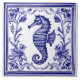 coastal sicilian ceramic tile,italian hand painted pattern,mediterranean nautical portuguese,blue and white marine life,summer ocean sea horse seahorse,beach house portugal,authentic classic traditional painting,vintage underwater antique coast,folk art spanish mexican talavera,monochrome monochromatic decorative animal