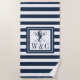 Seahorse Navy Blue Stripe Nautical Monogram Beach Towel