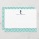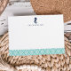 Use these preppy chic flat cards for all your correspondence! Summery personalized design features a tiny seahorse illustration and your name or monogram in classic nautical navy blue, with a patterned bottom border in breezy turquoise aqua. Comes with plain white envelopes.